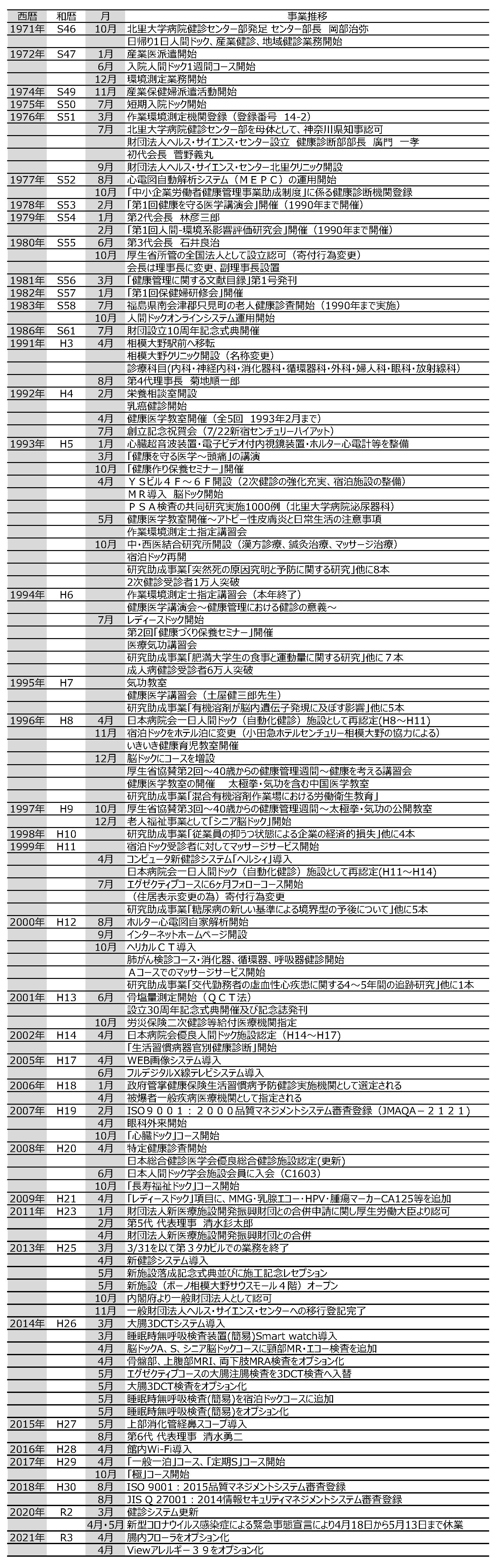 一般財団法人ヘルス・サイエンス・センター年表