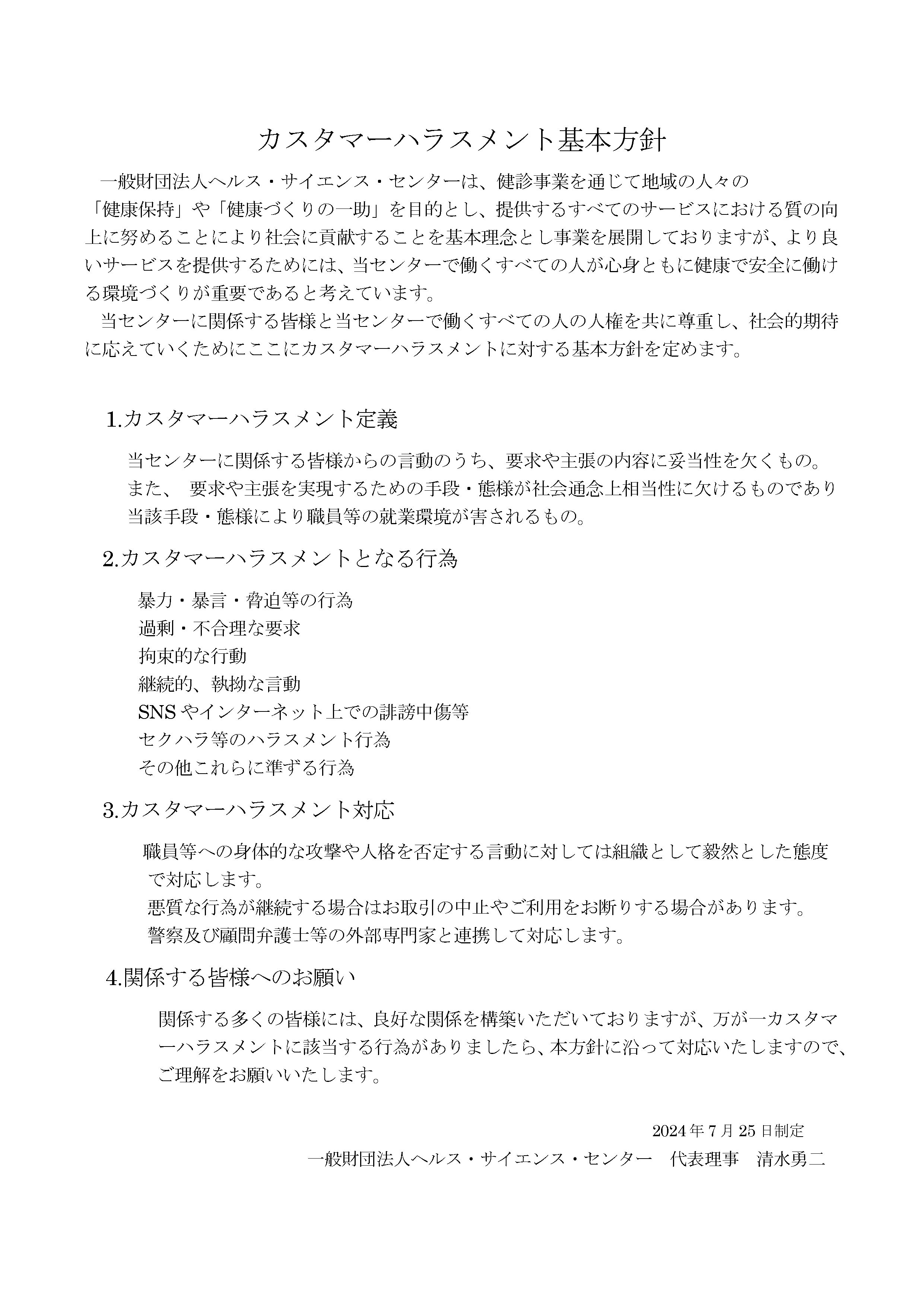 カスタマーハラスメント基本方針
